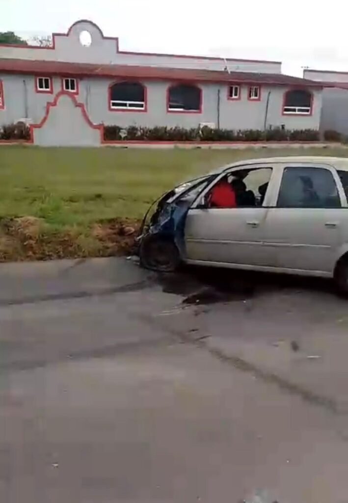 El vehículo en el que viajaban, un automóvil tipo Meriva color gris, colisionó de frente contra una camioneta destinada al transporte de materiales, lo que derivó en un fuerte impacto que dejó la unidad particular prácticamente destrozada.